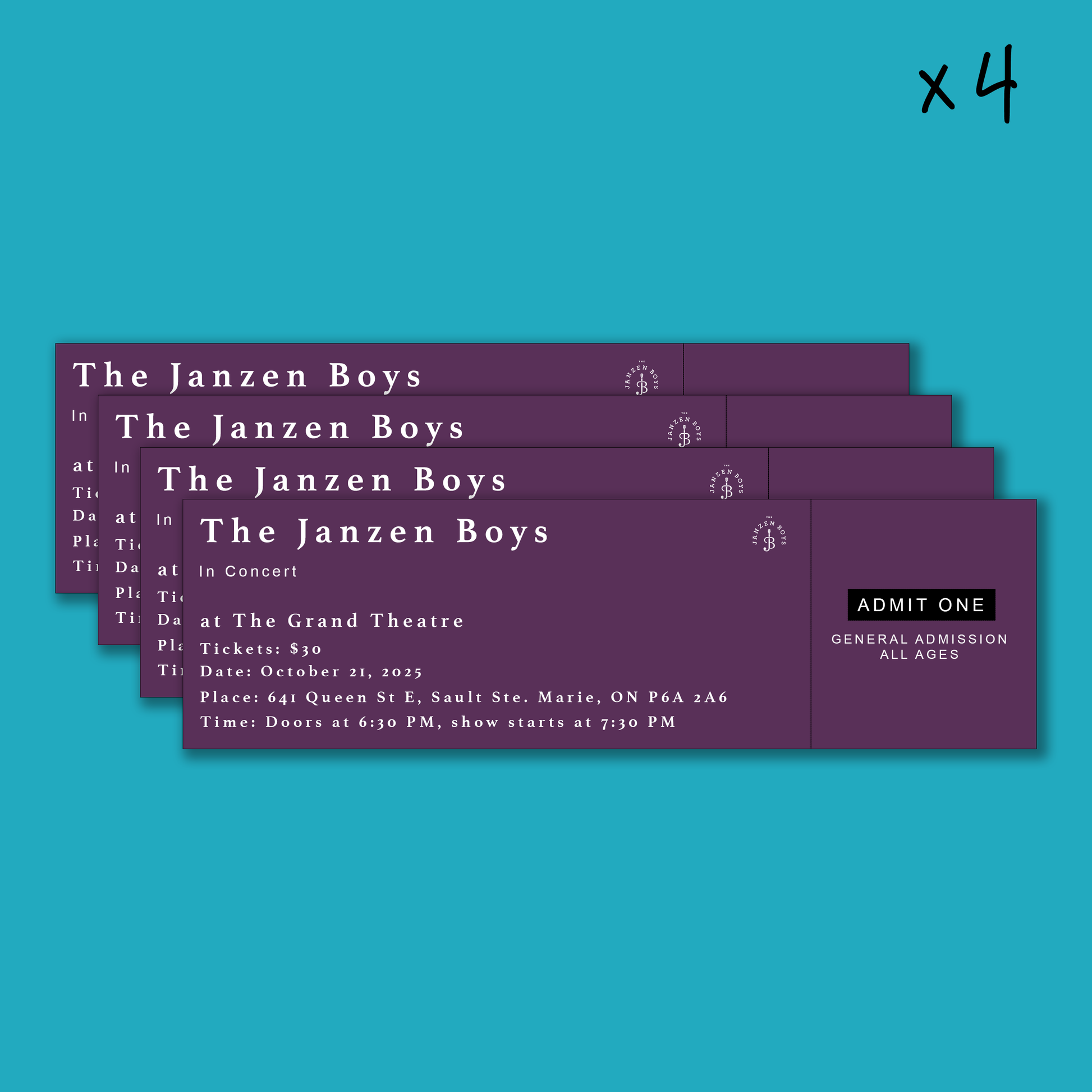 This is FOUR tickets to our show in Sault Ste. Marie on October 21st at The Grand Theatre.