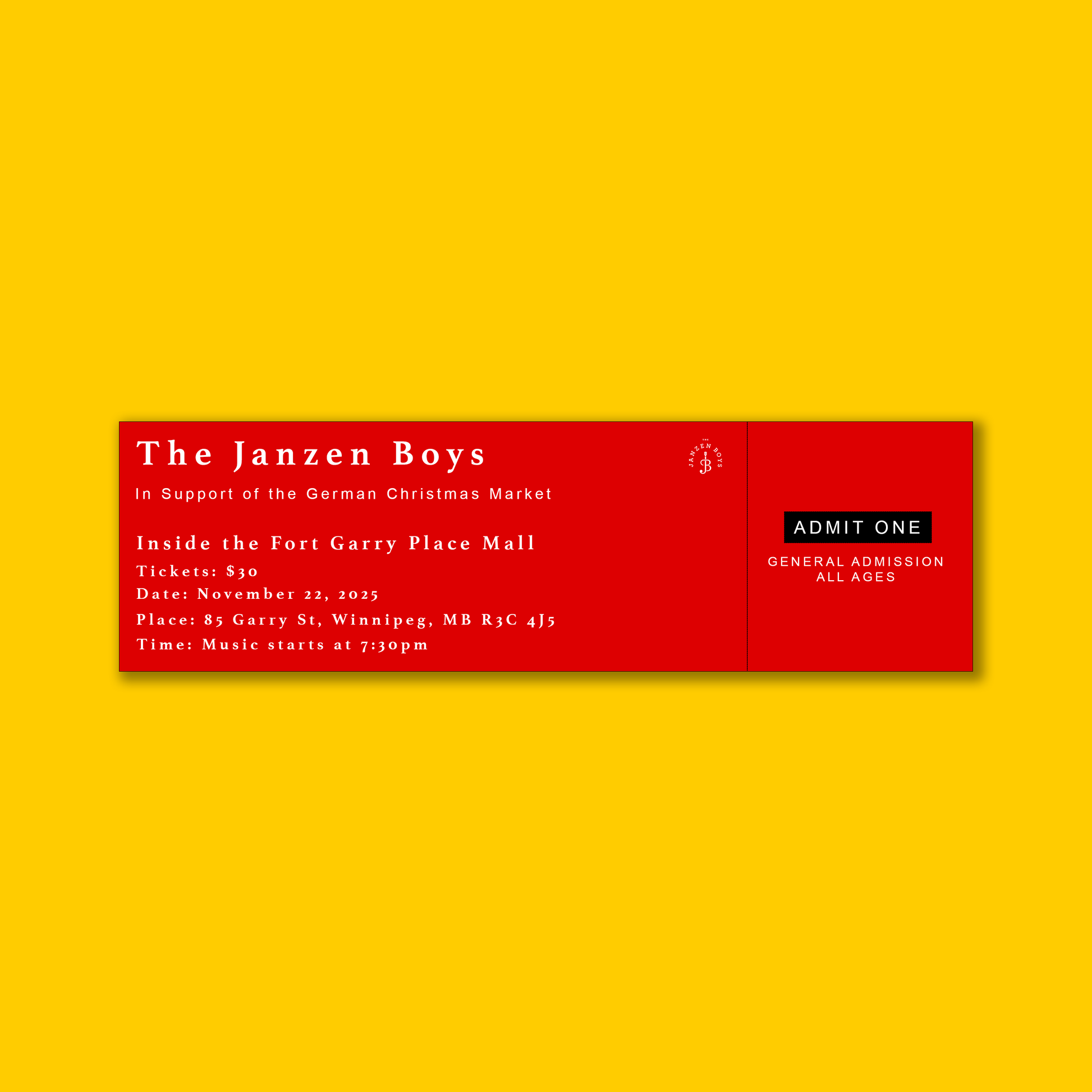 This is ONE ticket to The Janzen Boys' show at the German Christmas Market