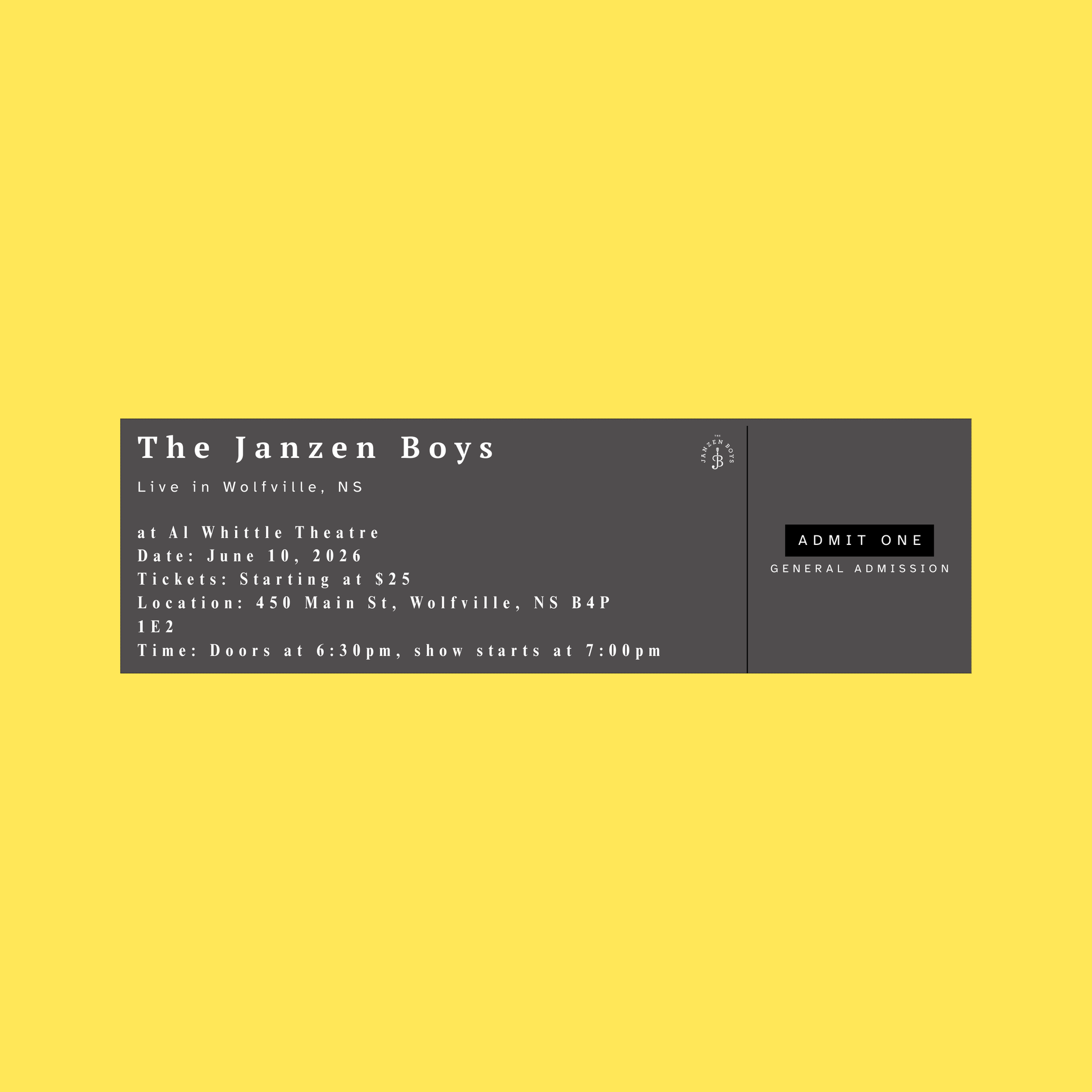 ONE Ticket to The Janzen Boys Live in Wolfville - Wednesday, June 10th